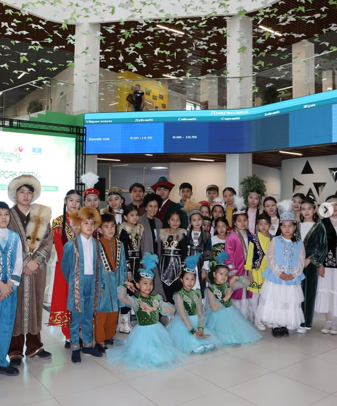 Осы мақсатта Оқушылар сарайына қаламыздағы С.Сейфуллин атындағы Nº4 мектеп-лицей оқушылары ұлттық киіммен келіп, қазақы дәстүрдің әсем үлгісін көрсетті. Сондай-ақ оқушыларымыз халық күйлерінен шашу шашып, әсем бимен тамаша мереке жасады.